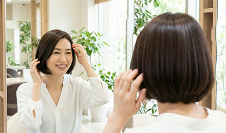 エイジングによる髪質の変化に合わせて、若々しいシルエットと健やかな頭皮を取り戻します。