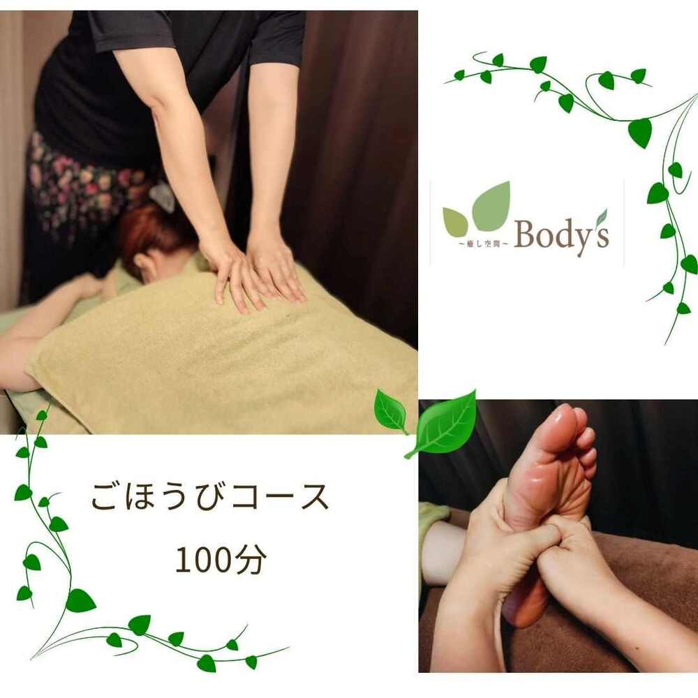 (もみほぐし40分+足つぼ30分+オイルハンド20分+顔つぼ10分)