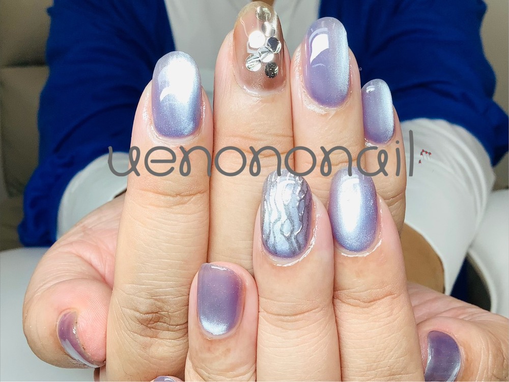 オープン記念他自店問わずオフ代無料※大きいパーツが1個以上又は硬いパーツがたくさんついているアートネイルには初回でもオフ代+2,000円です。丁寧なドライケア込み♪(施術時間は長くなります)現在30種の中からお好きなデザインを選んで10指のうち2指に同じデザインをアートします。8指のカラーをミラーカラーに変更は+700円。施術目安時間オフ込み90分