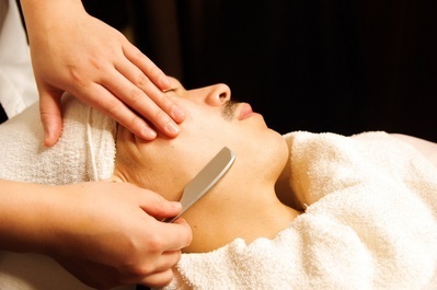通常の顔剃りよりも広範囲(額・鼻・首まで)を丁寧にシェービング。
