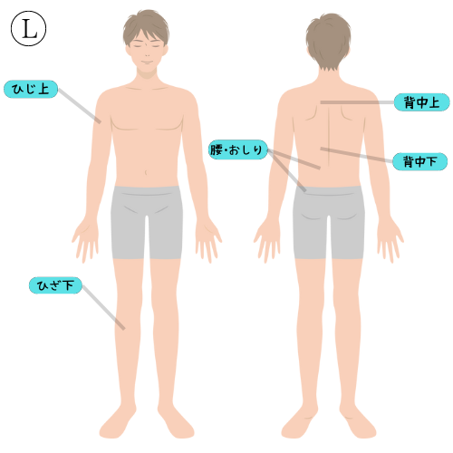 背中上/背中下/肘上/膝下/腰・ヒップ