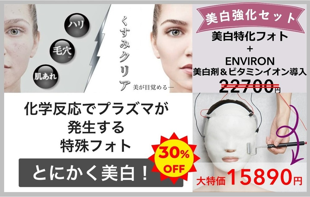 今なら美白プラズマフォトに+2,000円でエンビロンビタミン導入がお受けいただける大変お得なセットメニューです。