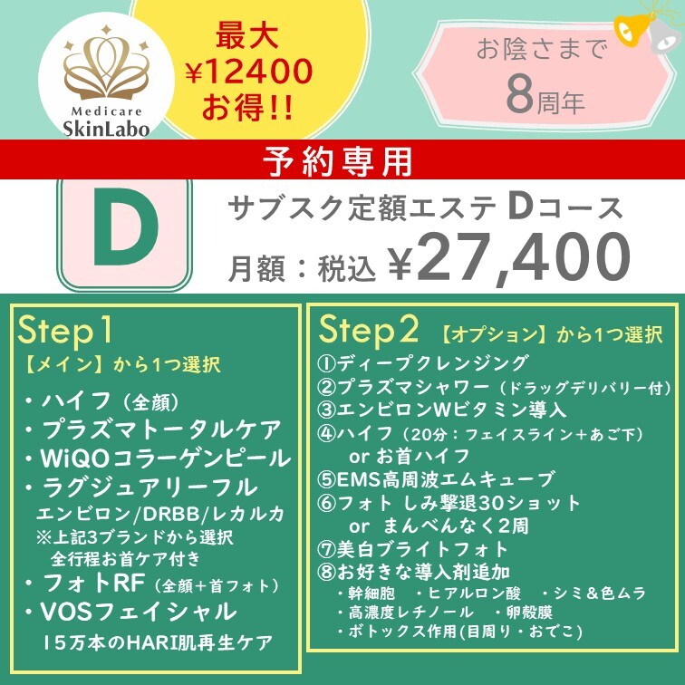 【ご予約専用】D★8周年サブスク★月額27400円/1回につき最大12400円お得♪