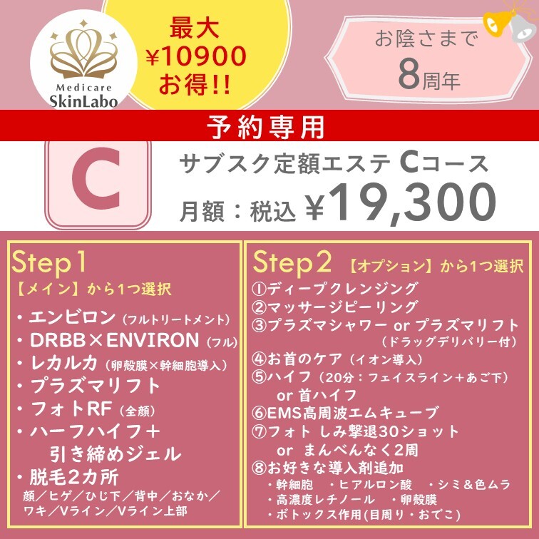 【ご予約専用】C★8周年サブスク★月額19300円/1回につき最大10900円お得
