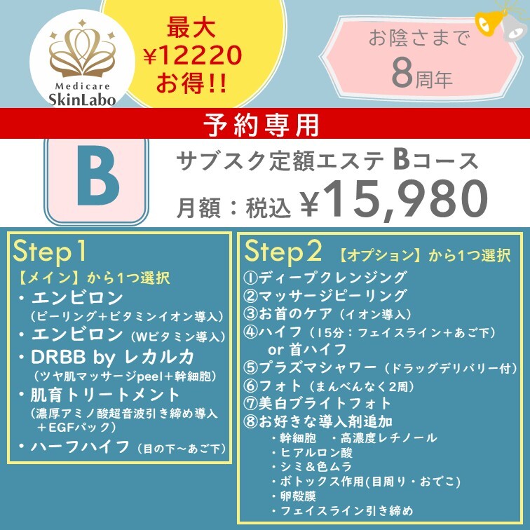 【ご予約専用】B★8周年サブスク★月額15980円/1回につき最大12220円お得