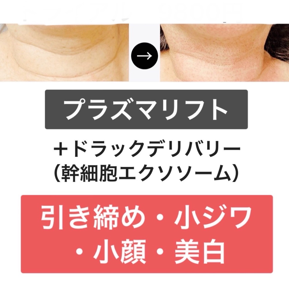 【プラズマリフト】★小ジワ・引き締め・美白・【無料:首ケアと幹細胞エクソソーム浸透無料サービス】