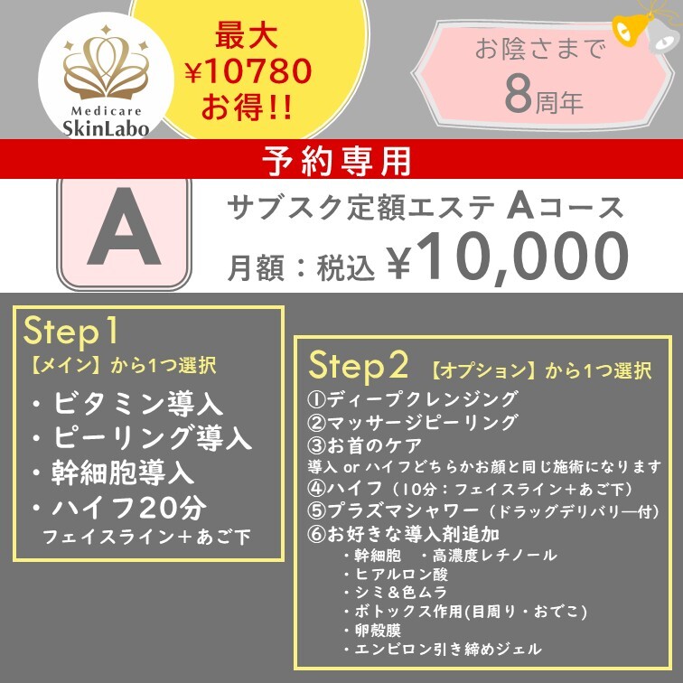 【ご予約専用】A★8周年サブスク★月額10000円/1回につき最大10780円お得♪
