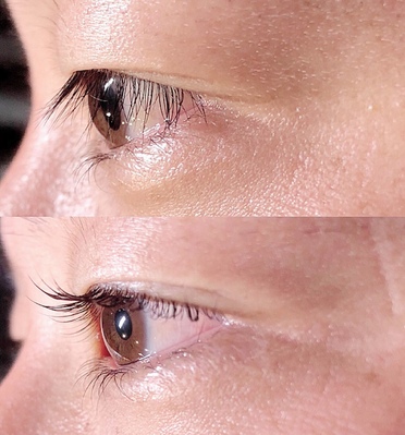 エクリフト(エクステ後のパーマ)¥4,400デザインキープラッシュの装着後にパーマをかけることで、更にリフトアップ!逆まつげで黒目がちなお目元も白目がきれいに見えるので、スッキリ目が大きく見える!