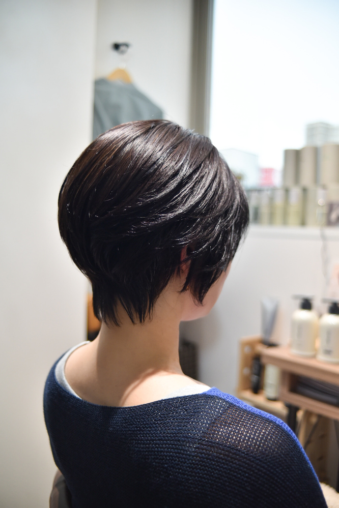 手櫛で乾かすだけで簡単にスタイリングができます。どの角度から見てもきれいなフォルムバランスになるので、身長も高見えします。 -