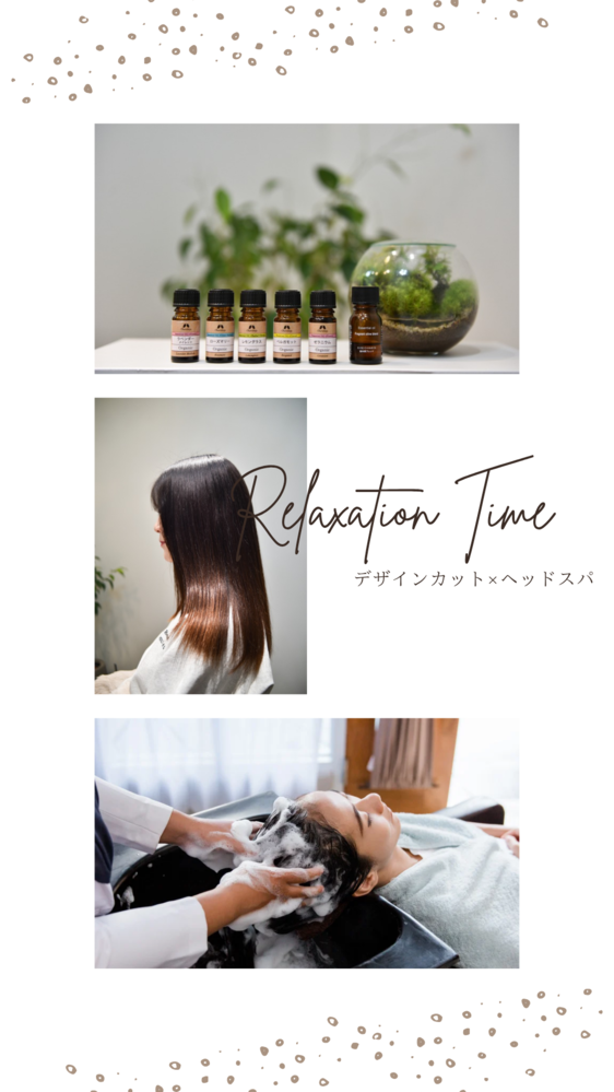 似合わせデザインカット+ヒト幹細胞スカルプヘッドスパ+アロマオイルの香り